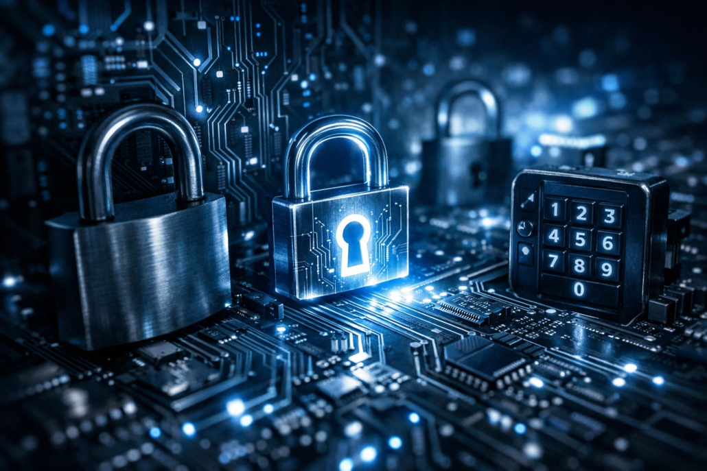 photographic imagine a mesmerizing abstract composition that intertwines the intricate patterns of a circuit board with the imagery of padlocks and di 1